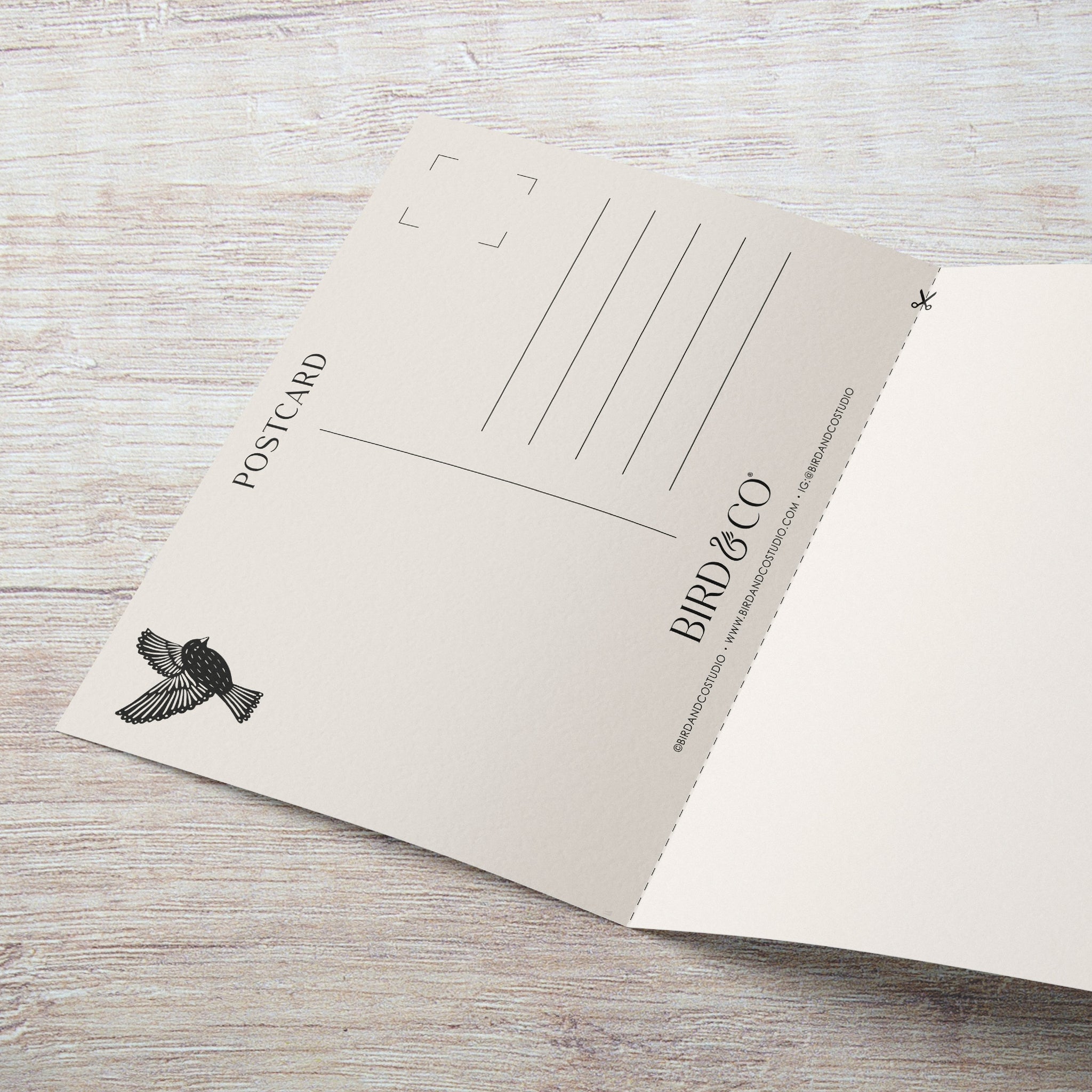• Printed inside so the recipient can cut out and reuse as a postcard.