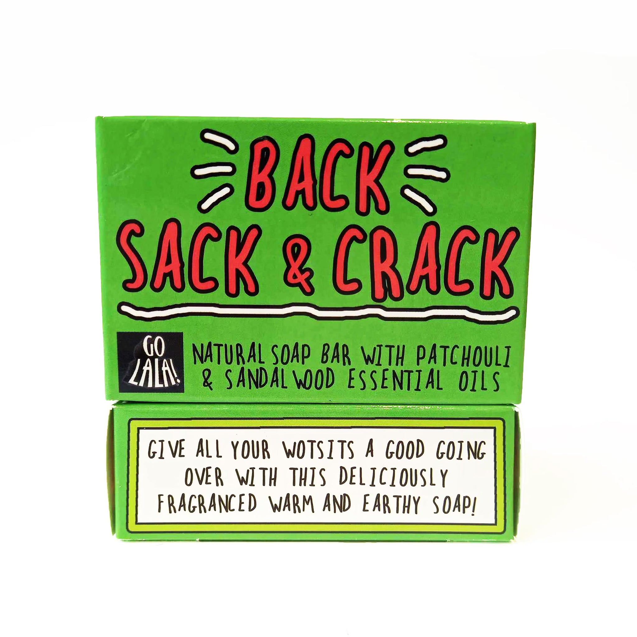 Back, Sack & Crack: Ingredients: Sodium cocoate, Sodium rapeseedate, Aqua, Sodium shea butterate, Pogostemon cablin (patchouli) leaf oil, Pterocarpus soyauxii (sandalwood) wood extract