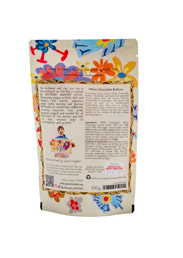 Creamy and moreish silky supersized White Chocolate Buttons with notes of vanilla.