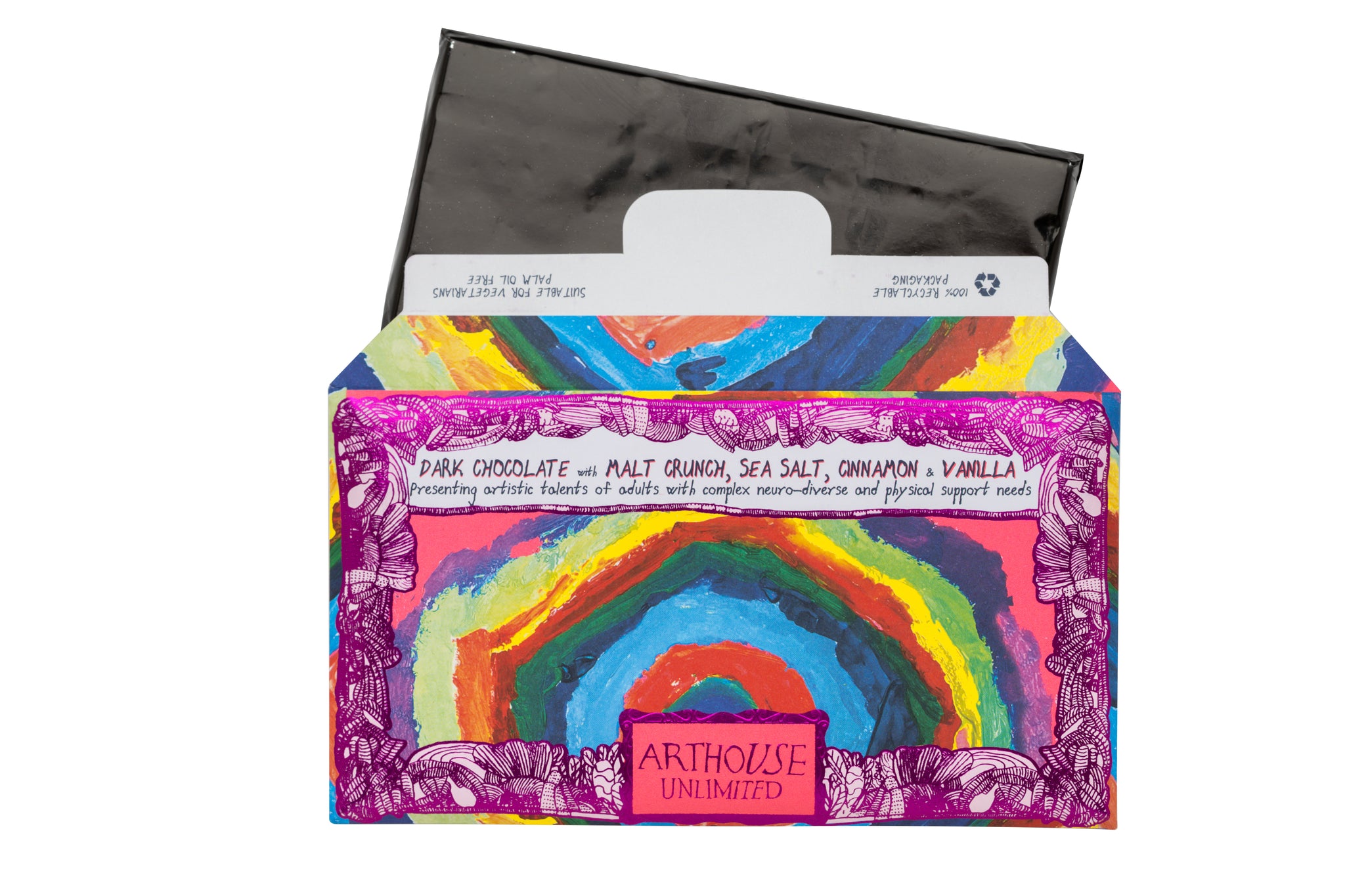 This chocolate features artwork created by a collaboration of ARTHOUSE Unlimited artists.